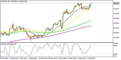 La valeur du franc suisse face au dollar américain a connu une réduction notable hier, atteignant 1,10, tandis que le ratio USD/CHF poursuit son ascension, après avoir établi un support à 0,90. Un récent rapport sur la fabrication ISM aux États-Unis révèle un retour à l'expansion du secteur après deux années de récession, améliorant ainsi l'attrait pour le dollar américain, alors que la probabilité d'une réduction du taux d'intérêt de la FED en juin diminue.
