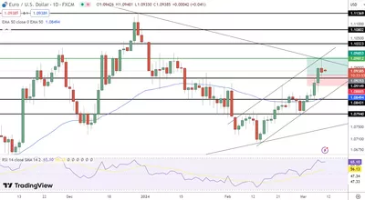 À l'opposé du récit économique de la zone euro, la vigueur du marché du travail américain, illustrée par l'ajout surprenant de 275 000 emplois en février, joue un rôle prépondérant dans les dynamiques monétaires. Malgré une légère hausse du taux de chômage et une diminution du taux de croissance salariale, la réticence du président de la Réserve Fédérale à procéder à des coupes immédiates dans les taux d'intérêt a tendance à affaiblir le dollar, au bénéfice de la paire EUR/USD.