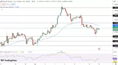Le 20 mars, la paire GBP/USD a connu une évolution minime, marquant une légère hausse de 0.02% pour clôturer à 1.2722. Les yeux des investisseurs sont rivés sur la publication de l'Indice des Prix à la Consommation (CPI) du Royaume-Uni pour février, ainsi que sur la décision de la Réserve Fédérale américaine (Fed) concernant les taux d'intérêt.